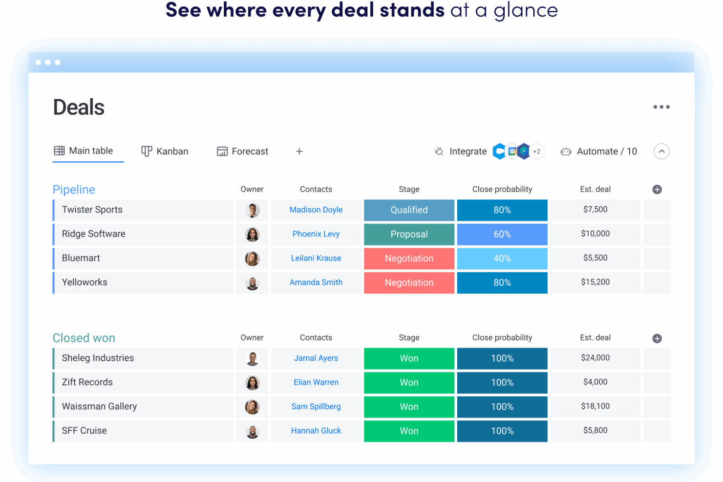 - Project Managers You can streamline tasks and track progress easily with monday sales CRM’s visual tools.