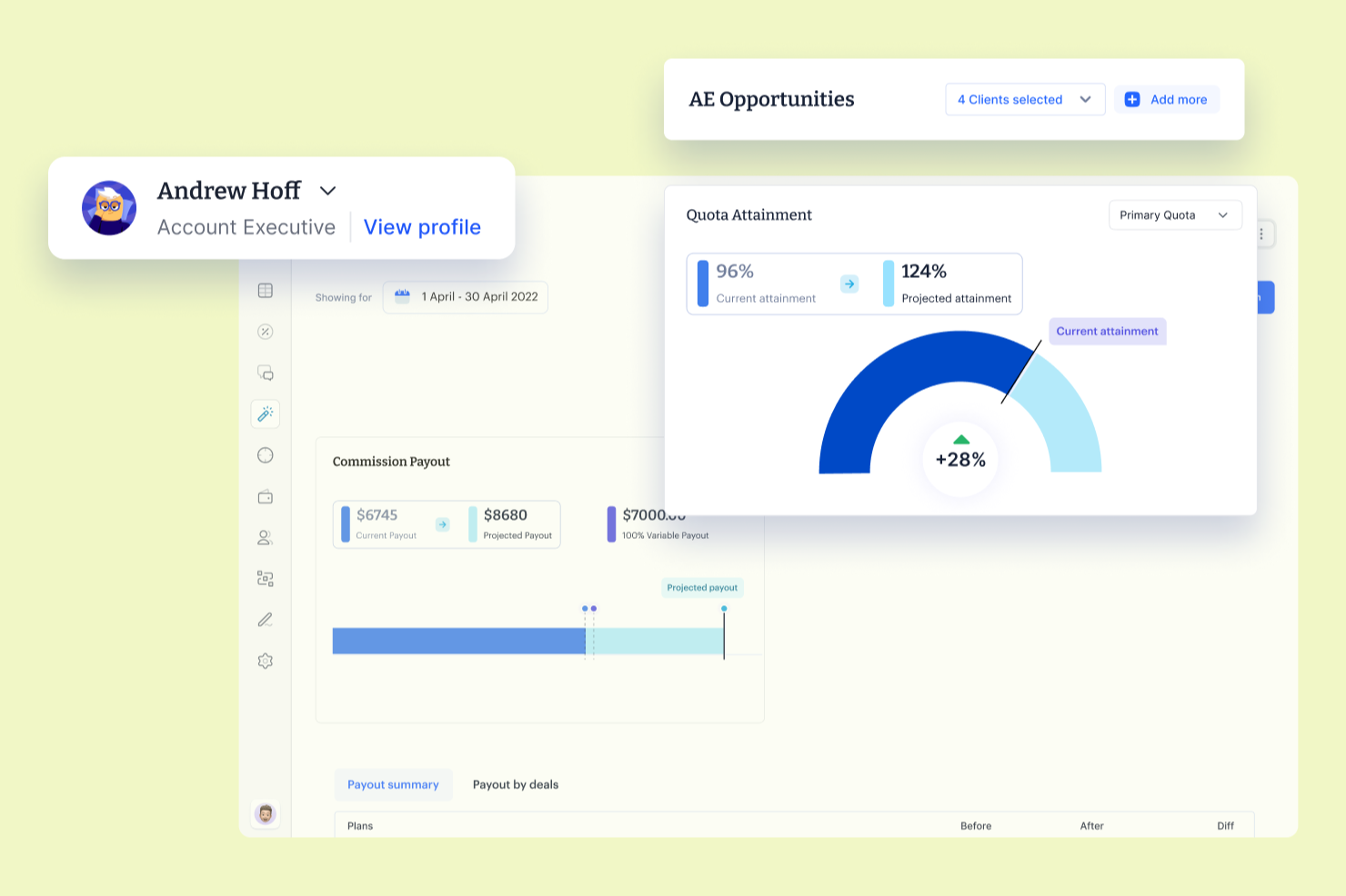 - You can model different quota and payout scenarios quickly without spreadsheets.